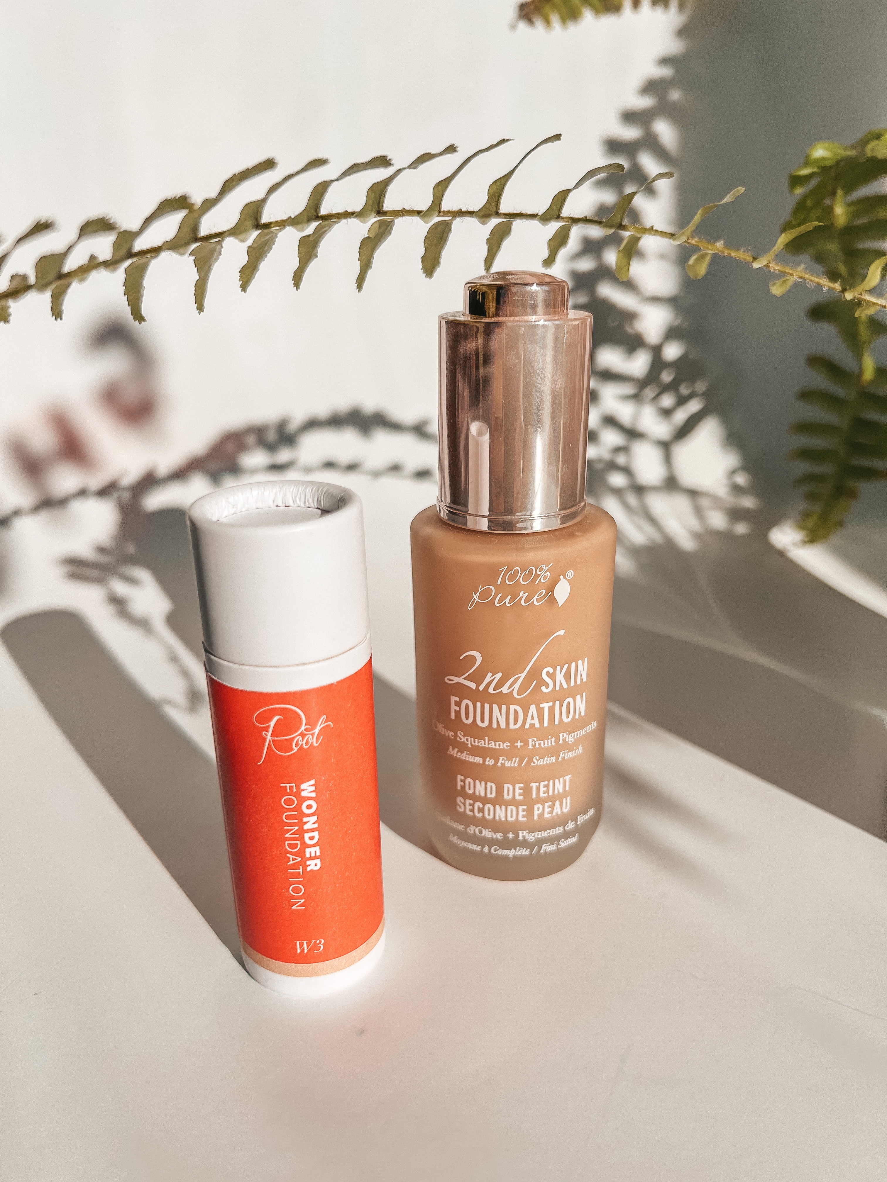 FOUNDATION – ROOT PRETTY Wonder Foundation $26 / 100%PURE 2nd Skin Foundation $47
